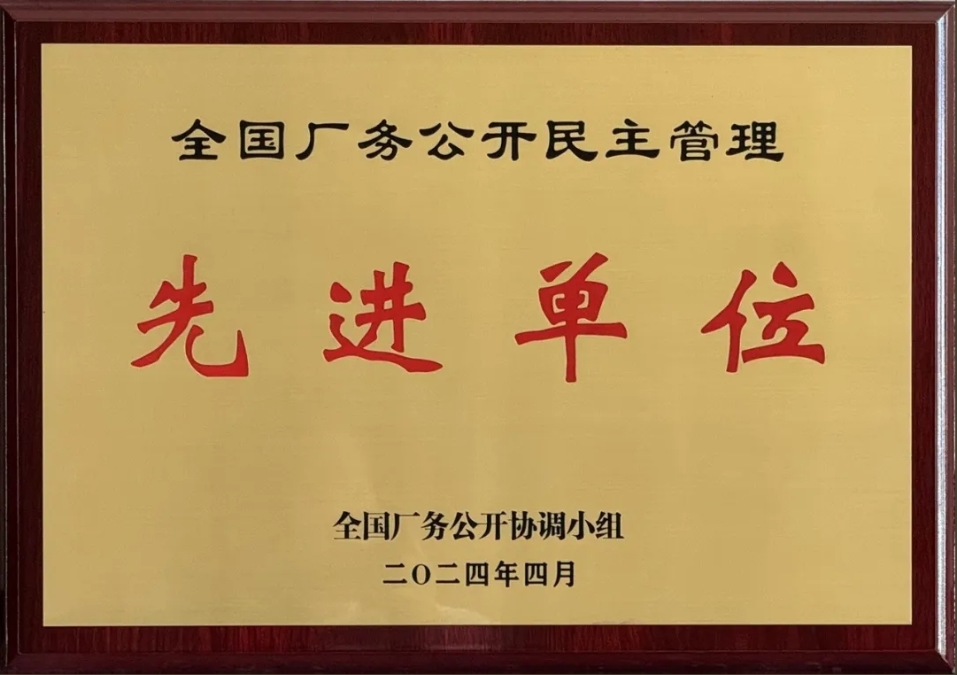 德扑之星官网药业集团获得了“2021-2023年全国厂务公开民主管理先进单位”的表彰